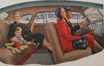 1950s car interior vintage automotive illustration family